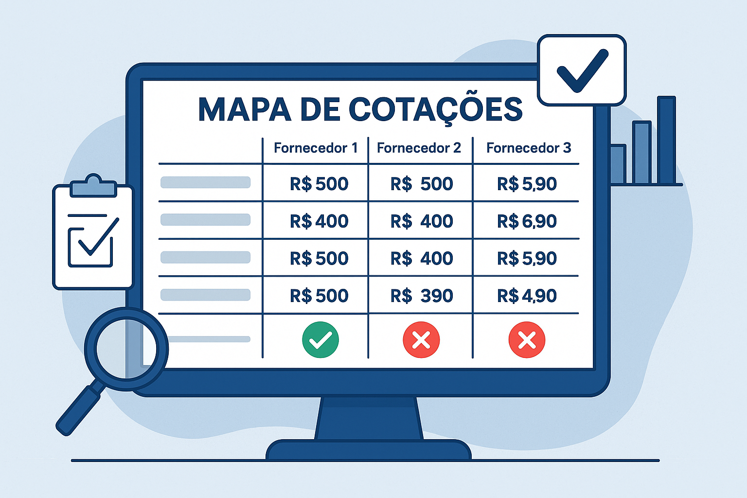 O mapa de cotações é uma tabela comparativa que reúne todas as propostas de fornecedores para um determinado item, serviço ou lote de materiais. Dessa forma, ele vai muito além de uma simples planilha de preços, já que considera critérios múltiplos além do valor, como prazo de entrega, condições de pagamento, qualidade dos insumos, logística e até a reputação do fornecedor.